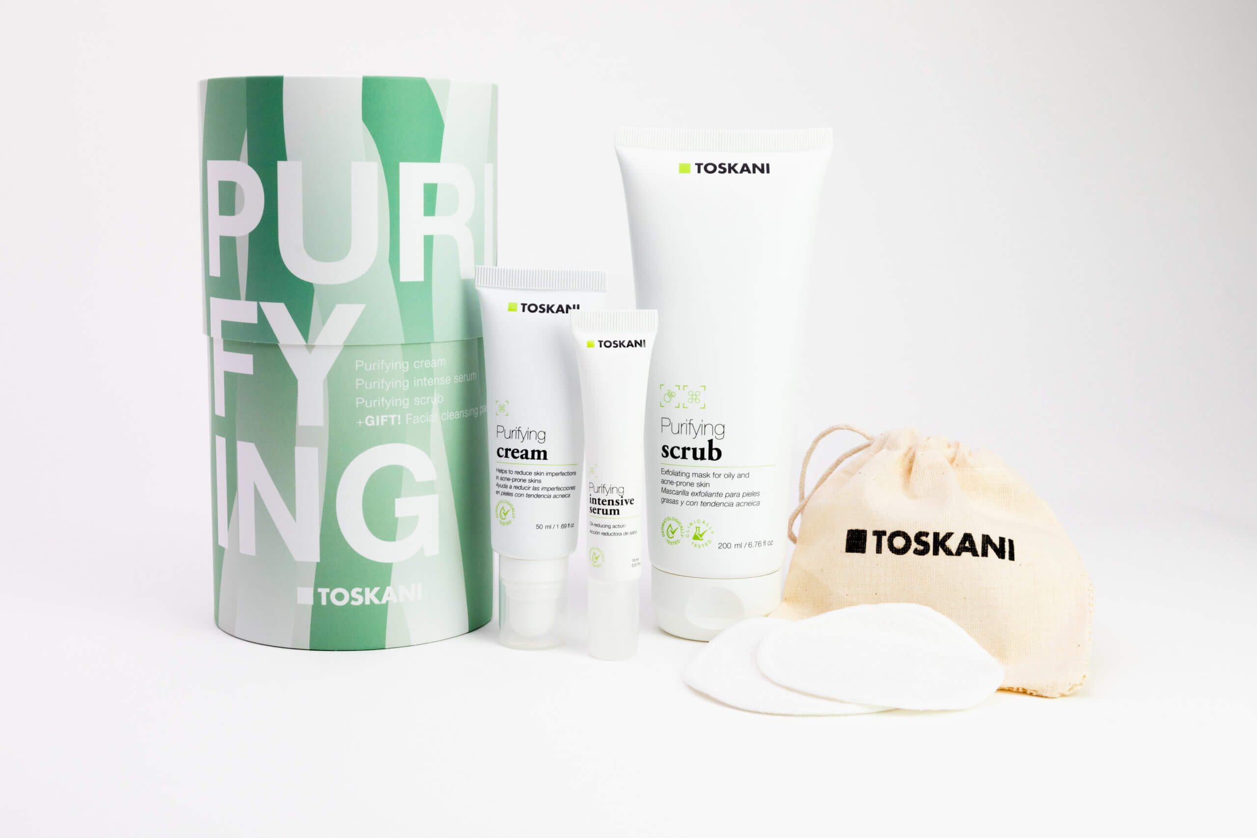 Le kit idéal pour les soins des peaux impures. Crème Purifiante, Sérum Intensif Purifiant et Gommage Purifiant dans un seul emballage. Des tampons de nettoyage réutilisables sont offerts en cadeau.