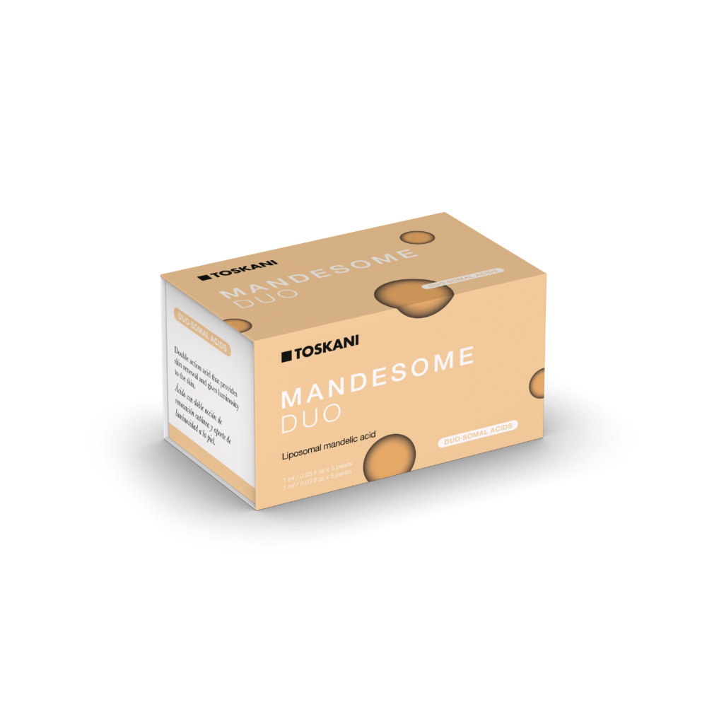 TOSKANI DUOSOMALS ist die Revolution der kosmetischen Peelings. Dank der DUOSOMAL TECH®-Technologie, die in Liposomen eingekapselte Säuren von höchster Reinheit und freie Säure enthält, werden sofort und ohne Nebenwirkungen wirksame Ergebnisse erzielt. Und das Beste: Sie können das ganze Jahr über verwendet werden! MANDESOME DUO wird bei unreiner Haut angewandt.